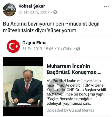 CHP'li vekil Muharrem İnce'nin skandal sözlerinin yer aldığı bir videoyu paylaştıktan sonra, "Bu adama bayılıyorum ben. Mücahit değil müteahitsiniz diyor. süper yorum" demesi Şakar'ın 15 Temmuz darbesini bir evde televizyondan izleyen CHP lideri Kılıçdaroğlu'na da nasıl destek verdiğini ortaya koydu.