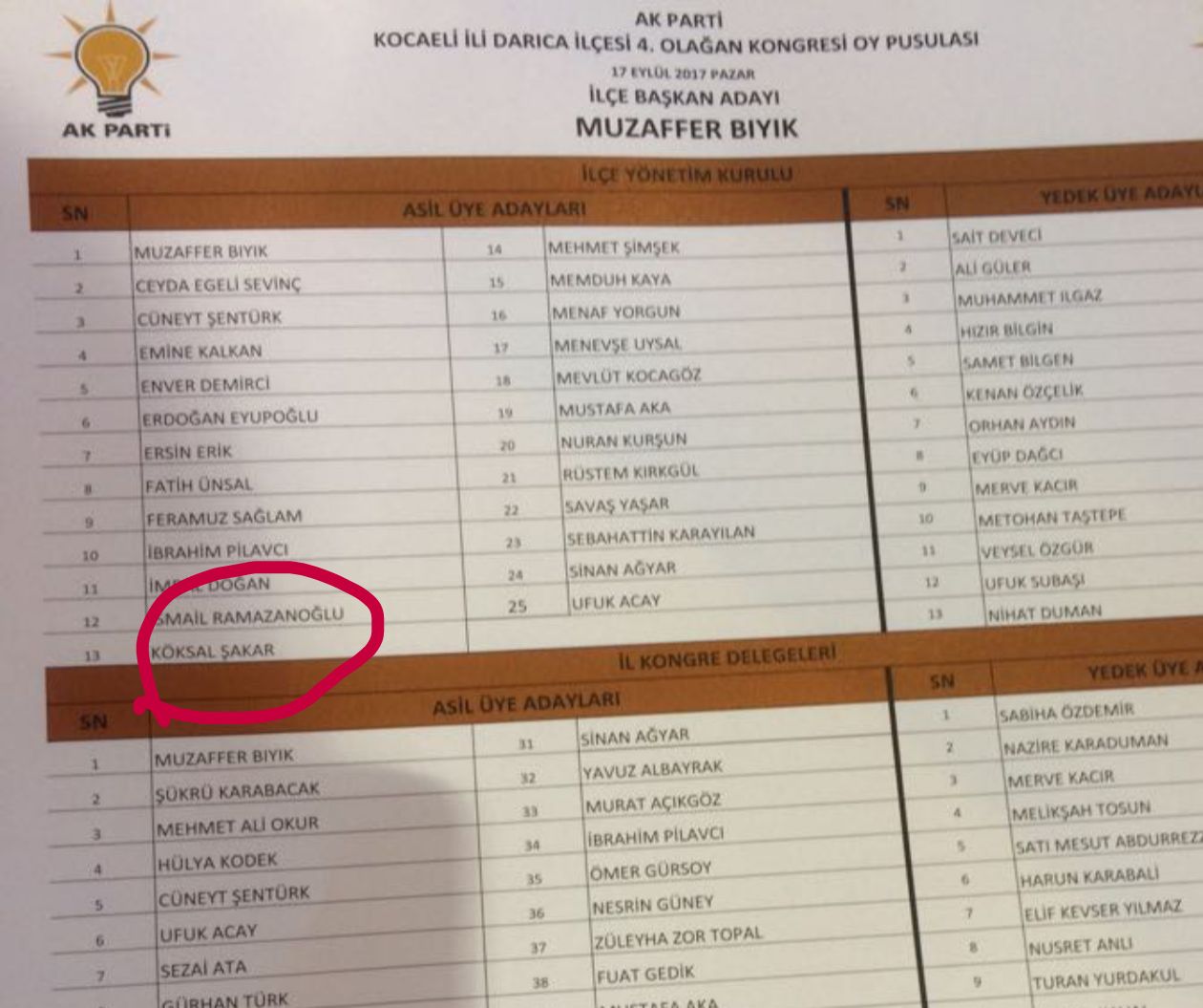 FETÖ/PDY'nin "hükümete ilk darbe girişimi" olarak kabul edilen 17-25 Aralık operasyonlarının yankıları devam ederken yaptığı paylaşımlarla skandallara imza atan Köksal Şakar'ın bu listeye nasıl alındığı ve hala bu listede tutularak yönetime nasıl girdiği merak konusu oldu. Köksal Şakar'ın sosyal medyada paylaştığı mesajlara gelen tepkilere rağmen silmemesi de ayrı bir skandal olarak yorumlandı.