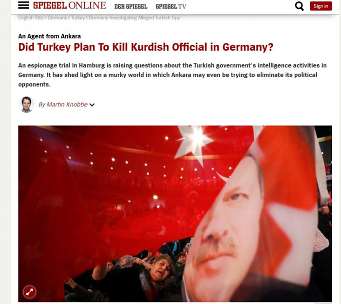 Spiegel Online’da 06 Eylül 2017’de yayınlanan “Did Turkey Plan To Kill Kurdish Official in Germany?” başlıklı Martin Knobbe imzalı haberde, MİT ajanı olmakla suçlanan Fatih S. hakkında Hamburg’da görülen espiyonaj davası, terör örgütü PKK'ya yakın Kürt Toplum Kongresi (KCD-E) Eş Başkanı Yüksel Koç ile Almanya’nın Bremen kentinde yapılan söyleşi de aktarılıyor.