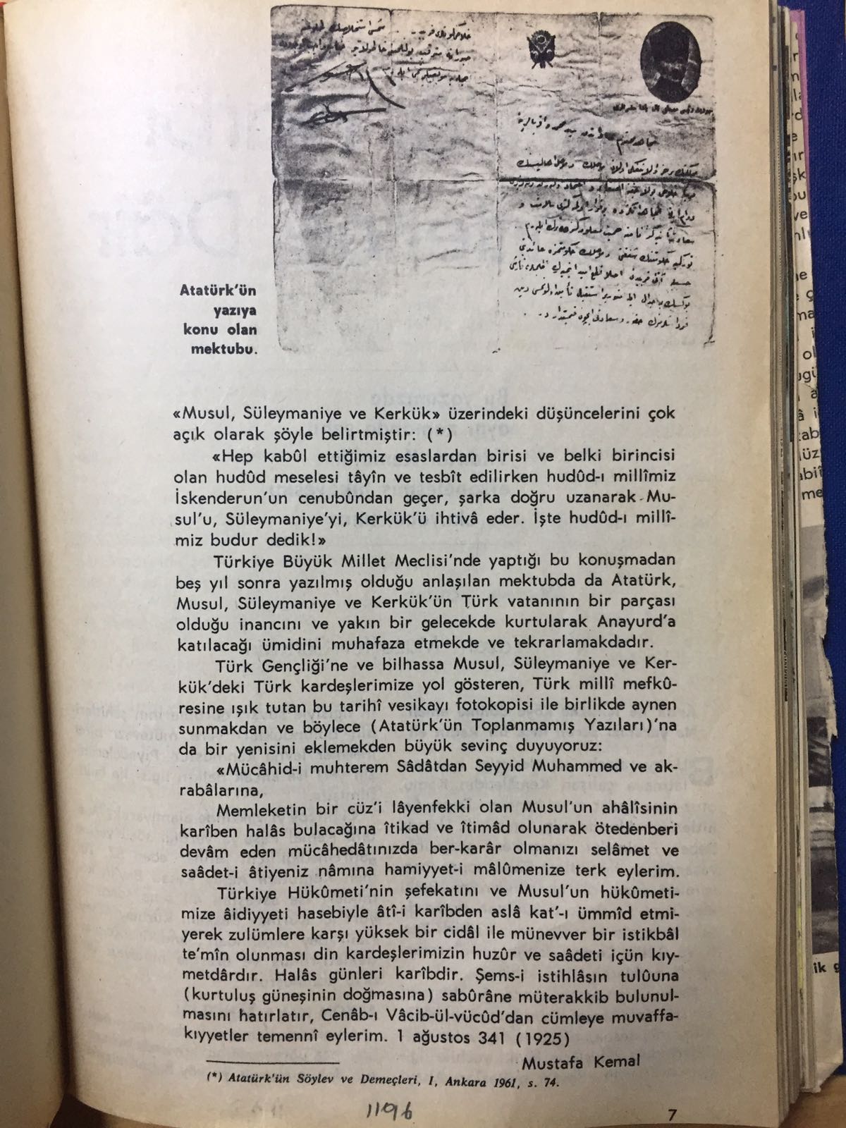 Atatürk’ün Kerkük-Musul mektubu
