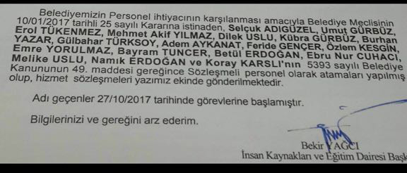 AVAZTÜRK’ün ulaştığı İnsan Kaynakları ve Eğitim Daire Başkanı Bekir Yağcı imzalı belgede kadro tahsis edilen isimler arasında Melih Gökçek’e yakınlığı ile bilinen meclis üyesi Hamdi Kesgin’in eşinden bürokrat yakınlarına yok yok.