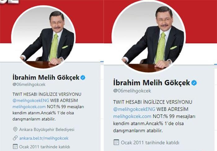 Ankara Büyükşehir Belediye Başkanlığı’ndan 28 Ekim’de istifa eden Melih Gökçek, aktif olarak kullandığı Twitter hesabındaki profil bilgilerinden Ankara Büyükşehir Belediyesi’ni sildi. Gökçek’in bilgilerinin konum kısmında Ankara Büyükşehir Belediyesi yer alırken, internet sitesi kısmında da belediyenin sitesindeki özgeçmişinin linki bulunuyordu. Melih Gökçek istifasının ardından mevcut bilgileri bir süre kaldırmamıştı.