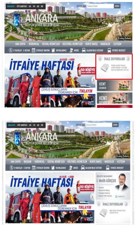 Öte yandan Ankara Büyükşehir Belediyesi’nin http://www.ankara.bel.tr/ adresli internet sitesindeki “Belediye Başkanımız İ. Melih Gökçek” kısmı da kaldırıldı. Sitedeki kısımda Gökçek’in özgeçmişi, fotoğraf albümü, kişisel internet sitesi ile Twitter hesabı gibi bilgiler bulunuyordu. Kullanıcılar bu kısımdan Melih Gökçek’e mesaj da gönderebiliyordu.