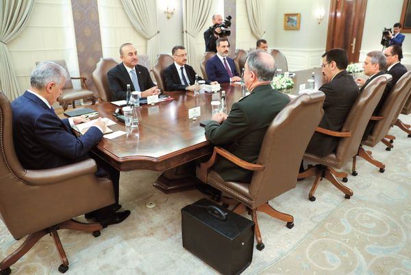 Cumhurbaşkanlığı Sözcüsü İbrahim Kalın’ın katıldığı Çankaya Köşkü’ndeki toplantıda; Genelkurmay Başkanı Orgeneral Hulusi Akar, Dışişleri Bakanı Mevlüt Çavuşoğlu, Gümrük ve Ticaret Bakanı Bülent Tüfenkci, Başbakanlık Müsteşarı Fuat Oktay, MİT Müsteşarı Hakan Fidan ve Dışişleri Bakanlığı Müsteşarı Ümit Yalçın da yer aldı. 1.5 saatlik toplantının ana gündem maddesi, Suriye’deki gelişmeler ve özel olarak İdlib’deki son durumdu.