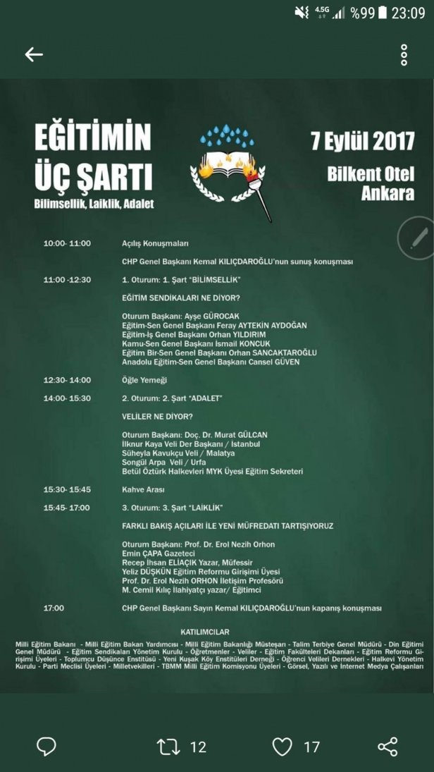 Sözde eğitim kurultayına katılan isimler arasında İhsan Eliaçık ve gazeteci Emin Çapa gibi isimlerin yer alıyor olması CHP'nin eğitimden ne anladığını ortaya koymaya yetti.