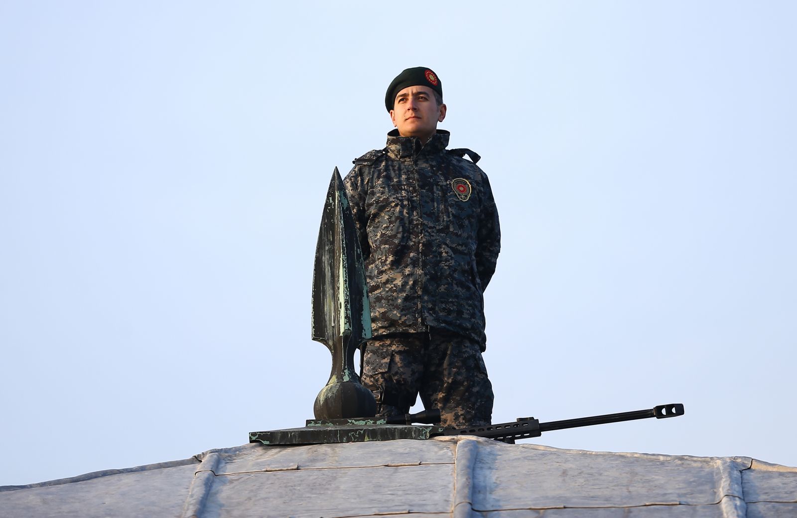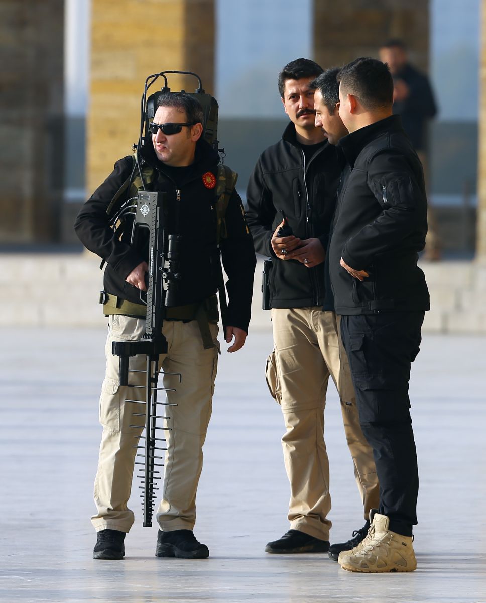 Anıtkabir'deki törende, "dronesavar" olarak bilinen silahı taşıyan Cumhurbaşkanlığı korumaları da dikkati çekti.