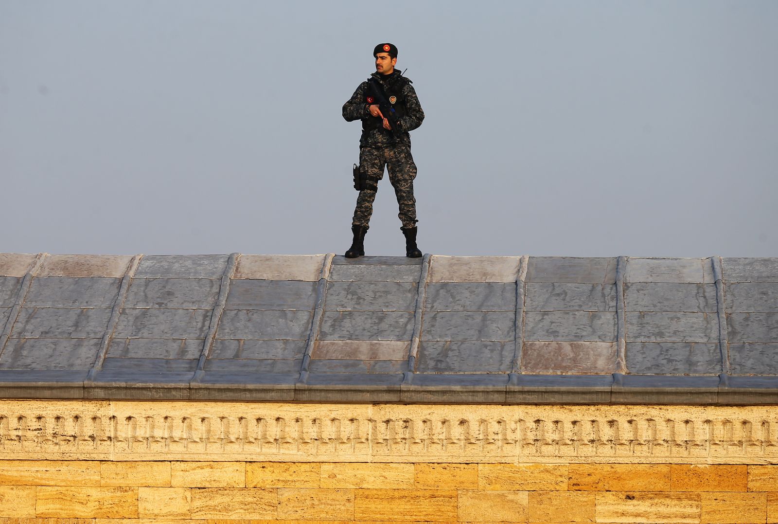 Gazi Mustafa Kemal Atatürk'ün ölümünün 79. yıl dönümü töreni dolayısıyla Anıtkabir çevresinde yoğun güvenlik önlemi alınırken garnizonda görevli askerler, elektronik cihazlarla kimlik kontrolünün ardından Anıtkabir'e alındı.