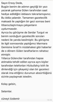 Star gazetesi yazarı Ersoy Dede, bazı gazetecilerin zamanında Pensilvanya'ya giderek Gülen'den saat hediye aldıklarını yazmış ve neden hala iade etmediklerini sormuştu.