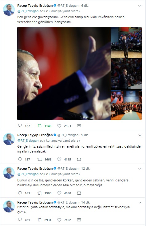 Bunun için de biz, gençlerden korkan, gençlerden çekinen, yerini gençlere bırakmayı düşünmeyenlerden asla olmadık, olmayacağız.