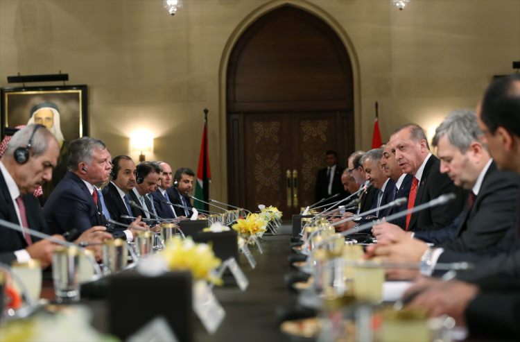 Cumhurbaşkanı Erdoğan ile Ürdün Kralı 2. Abdullah'ın El-Hüseyniye Sarayı'ndaki baş başa görüşmelerinin ardından heyetler arası görüşmeye geçildi.