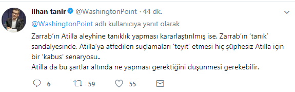 İşte o duyurunun ardından 20 aydır FETÖ kumpası davanın tüm kirli çamaşırlarını bilen, kamuoyunda “kripto FETÖ’cü” olarak adlandırılan ABD’deki İlhan Tanır, sosyal medya hesabından Mehmet Hakan Atilla’yı tehdit eden bir mesaj paylaştı.