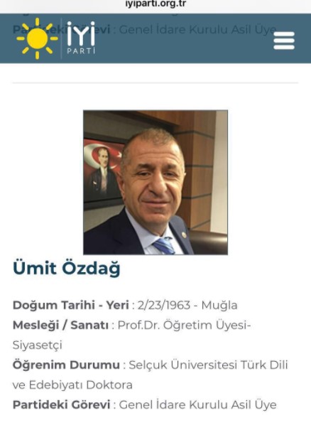 Diğer Genel Başkan Yardımcısı Ümit Özdağ da yanlışlıktan payını aldı. Tokyo doğumlu olan Özdağ Muğla doğumlu gösterilirken, Selçuk Üniversitesi meznu olarak yazıldı.