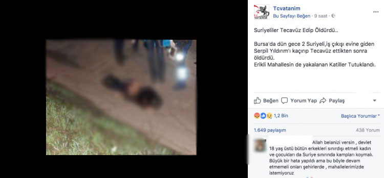 Paylaşım yapılan bir Suriyeli'nin tecavüz ve cinayet olayının yalan ve uydurma olduğu, kullanılan görselin de İstanbul'da 2 yıl önce işlenen bir cinayete ait olduğu öğrenildi.