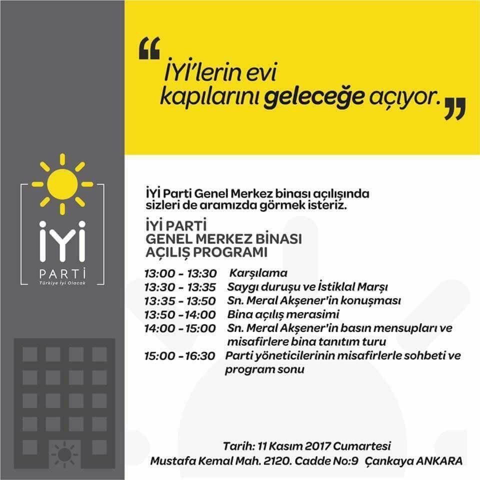 İşte İYİ Parti genel merkezinin açılışının programı: