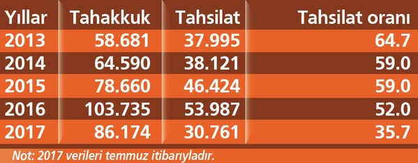 Geçen yıl toplam 103 milyar liralık KDV tahakkukuna karşılık tahsilat oranı, 53.9 milyar lirayla yüzde 52 seviyesinde kaldı.
