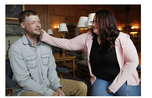 ABD'de Lilly Ross adlı genç kadın, kocasının yüzü nakledilen adamla bir araya gelince duygusal anlar yaşandı.