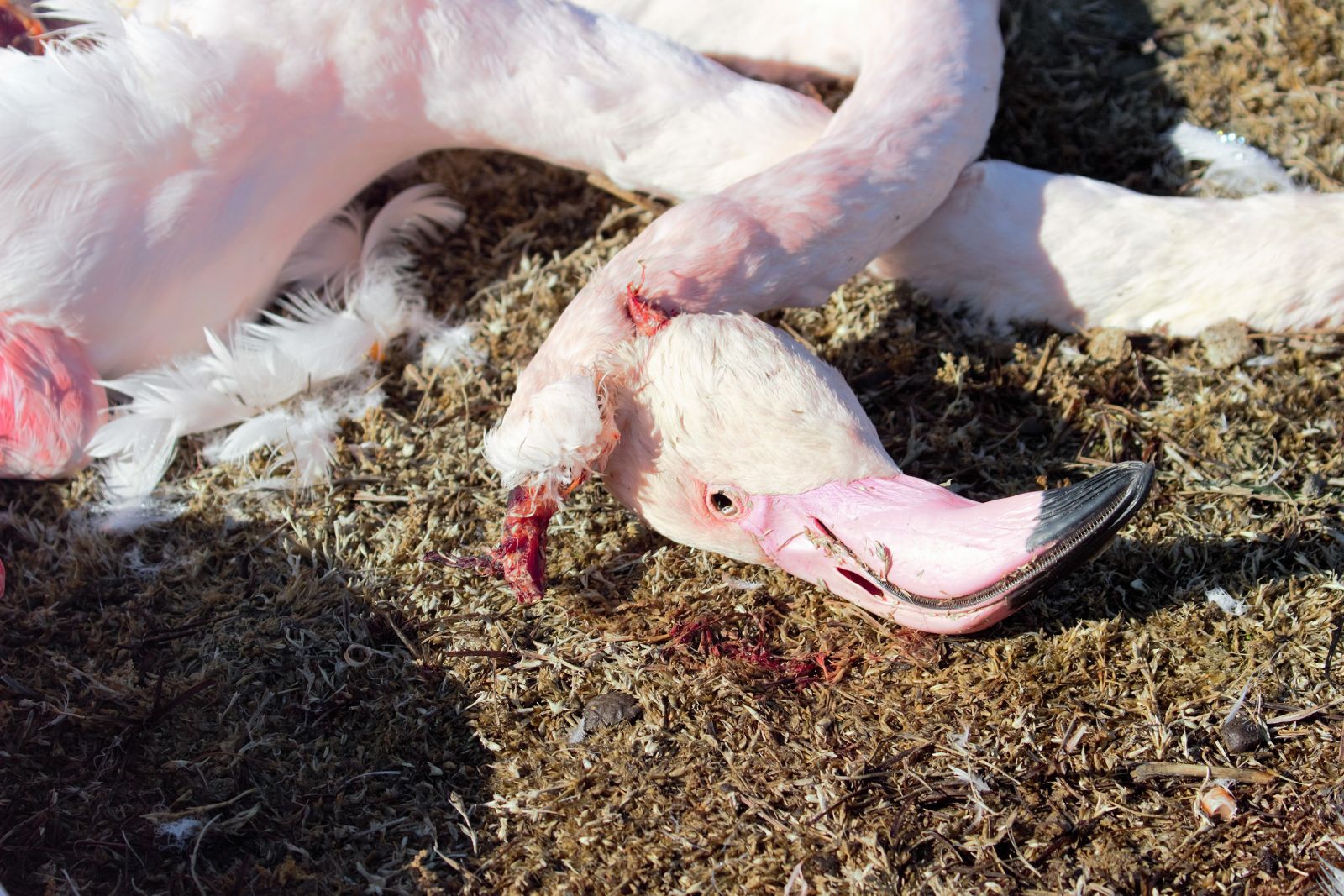 Konya'nın Ereğli ilçesinde, Akgöl Sazlıkları olarak bilinen bölgede vurulduktan sonra boğazları kesilmiş ve vücutları parçalanmış flamingolar bulundu.