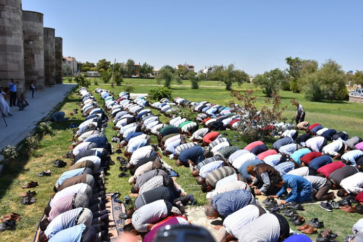 Daha sonra yüzlerce araçtan oluşan konvoy ile Sultanhanı ilçesine gelen Solak ve beraberindeki vatandaşlar, ilçenin sembolü olan Sultanhanı Kervansarayı önünde toplandı. Burada kurban keserek, tekbirler getiren vatandaşlar, daha sonra hanın arkasında şükür namazı kıldı, dua etti.