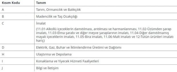 Selektif sektörler, Avrupa Topluluğunda Ekonomik Faaliyetlerin İstatistiki Sınıflaması (NACE) çerçevesinde aşağıdaki gibi belirlenmiştir: