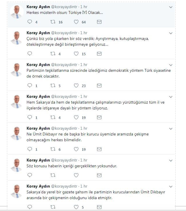 "Sakarya’da yerel bir gazete şahsım ile partimizin kurucularından Ümit Dikbayır arasında bir çekişmenin olduğunu iddia etmiştir.