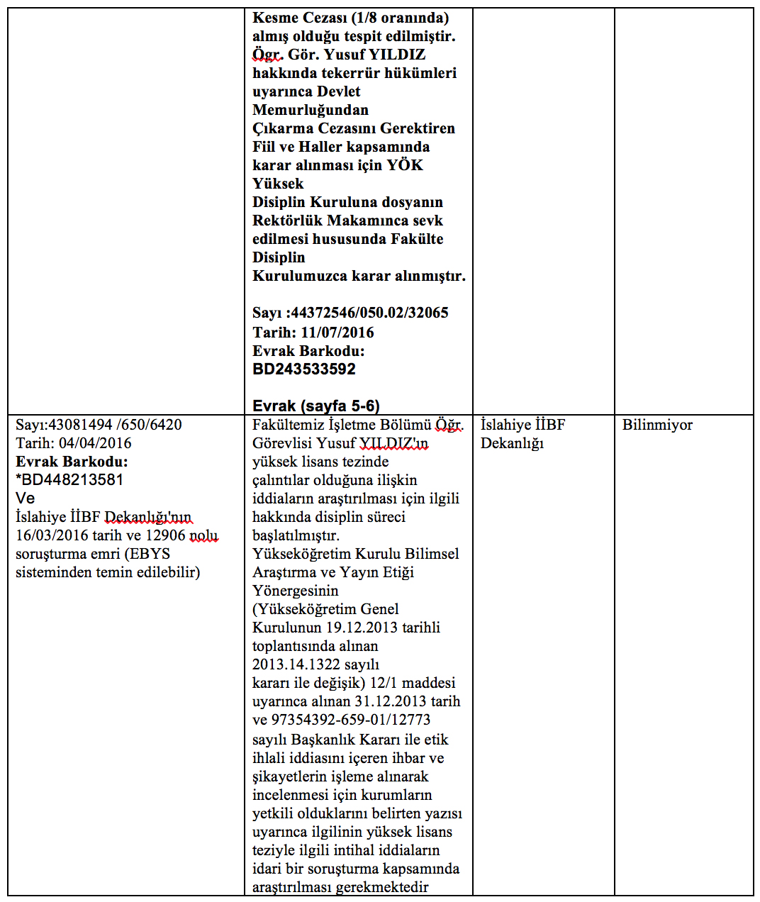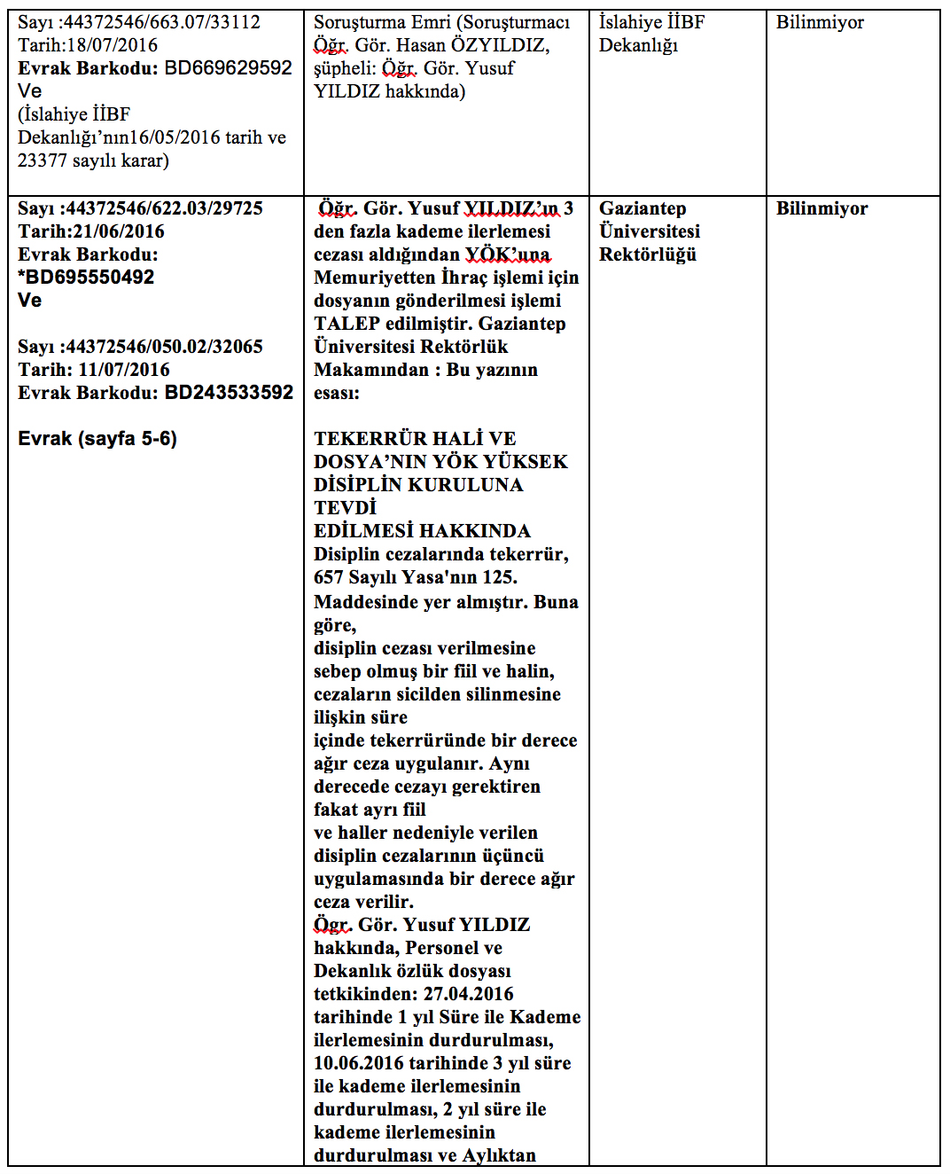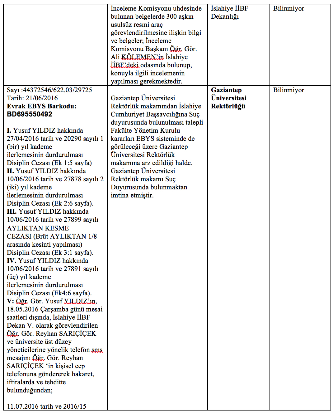 Öte yandan AVAZTÜRK, şu an görev yapan İslahiye İİBF Dekanlığı ve Gaziantep Rektörlüğü tarafından devam ettirildiği ve devam ettirilmediğine ilişkin çeşitli konulardaki İNCELEME, SORUŞTURMA emirlerinin kayıtlarına ulaştı.