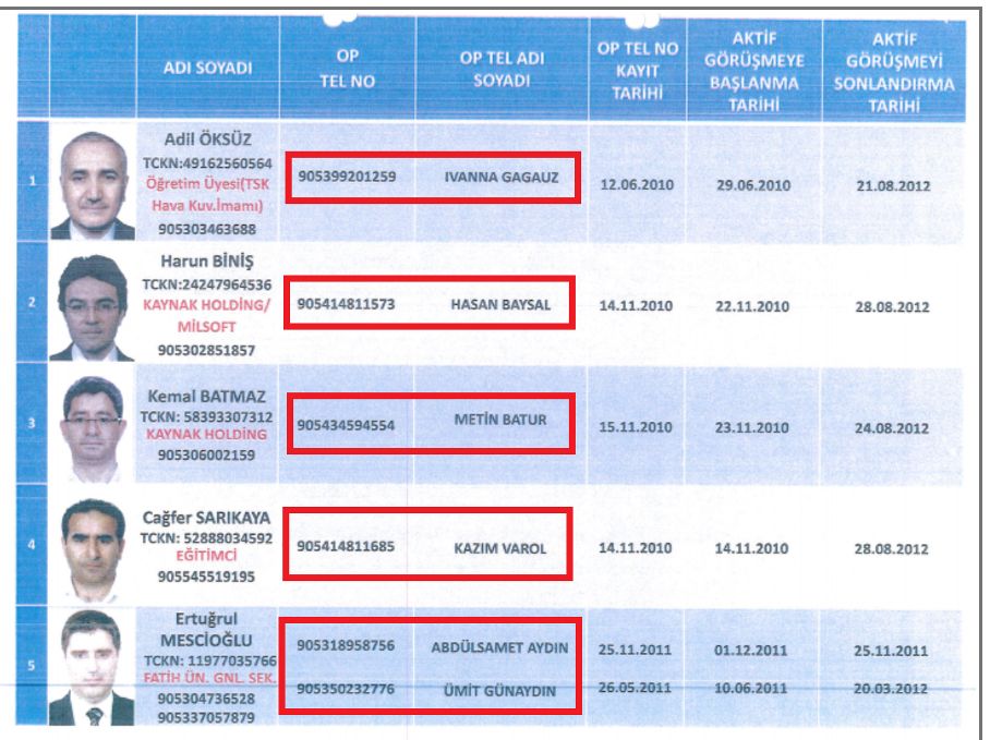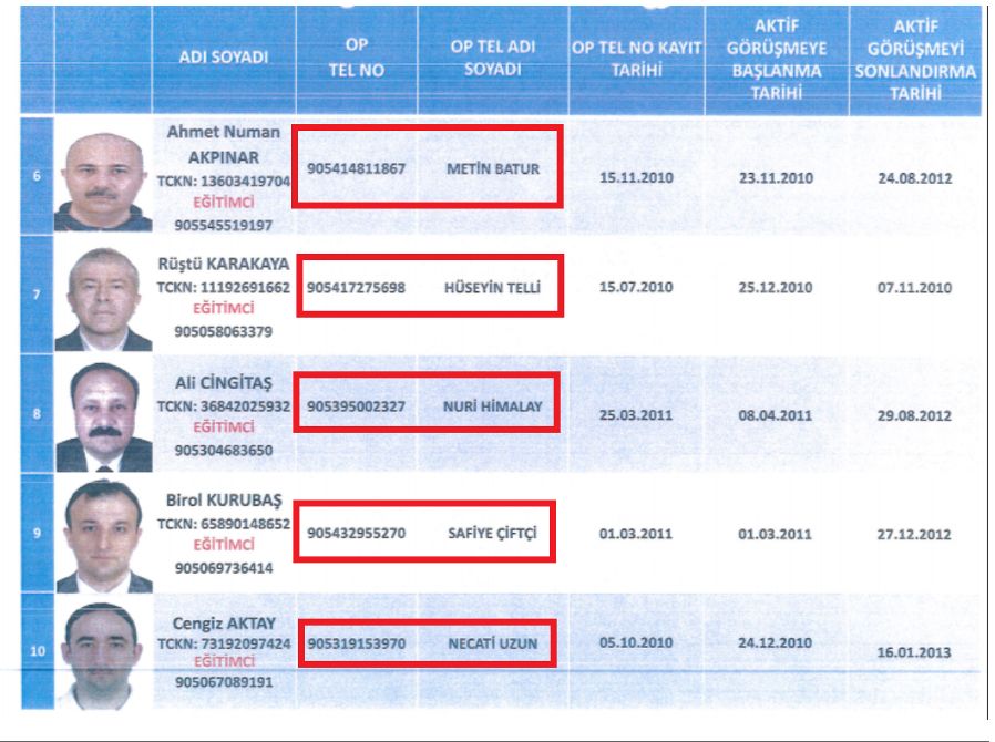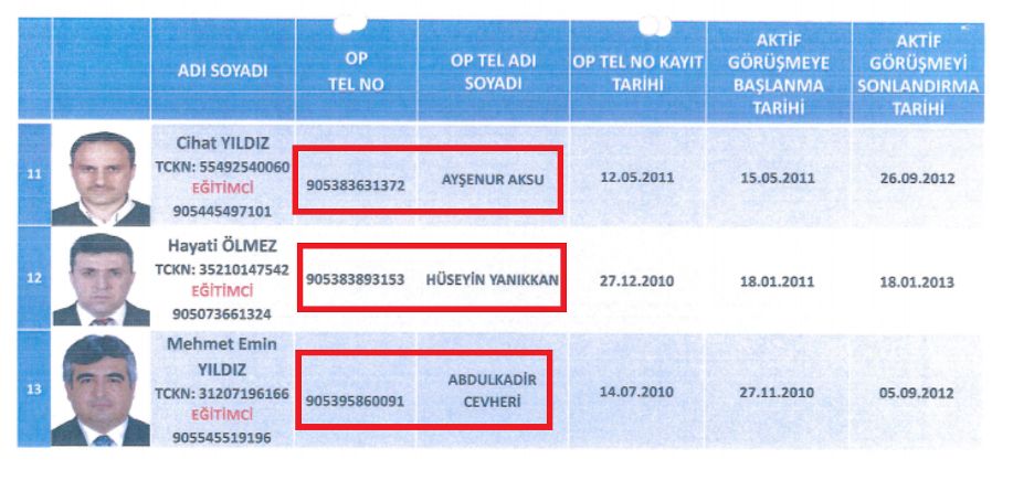 FETÖ/PDY'nin "Mahrem Hizmetler" olarak adlandırılan yapılanma bünyesinde faaliyet gösteren, aralarında Adil Öksüz, Kemal Batmaz ve Harun Biniş gibi isimlerin de yer aldığı 13 şahsın, 2010-2012 yılları arasında operasyonel telefon hattı kullandıkları belirlendi.