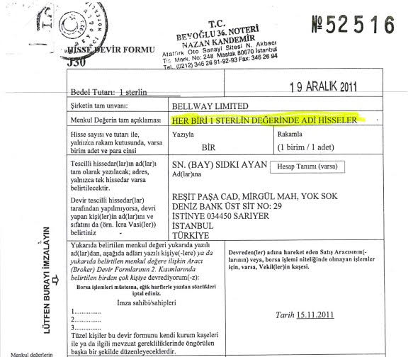 Belgelerle ilgili ortaya çıkmayan bir detayı ilk kez Odatv açıklıyor. “Man adası” tartışmasının ana omurgasını Sıtkı Ayan’ın kurduğu şirket oluşturuyor. CHP’nin açıkladığı belgelere göre Ayan “Bellway Limited” isimli bir şirket kurdu. Belgelerde şirketin sahibi olan Ayan’ın adresi olarak “Reşit Paşa Cad, Mirgül Mah, Yok sok. Deniz Bank üst sit no: 29 İstinye 034450 Sarıyer”yazıyor.