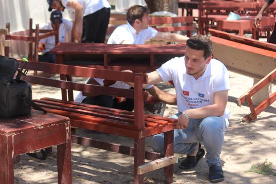 Somali ekibinde bulunan İstanbul Sabahattin Zaim Üniversitesi Hukuk Fakültesi 2. sınıf öğrencisi Usame Targal, yetimhanedeki 200 sıra ve masayı boyadıklarını ve çalışmalarına devam ettiklerini belirterek, yetimhanenin tuvaletlerinin tadilatını da yapacaklarını aktardı.