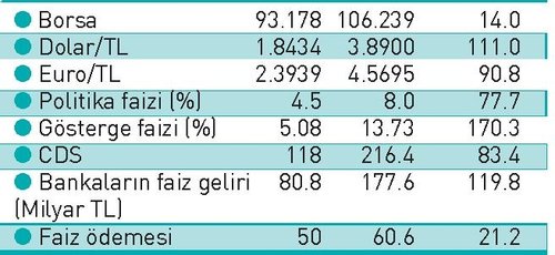 Saldırıların başladığı Mayıs 2013'te yüzde 5.08 olan gösterge faiz, bu hafta yüzde 13.73'e ulaştı. Faiz oranında yüzde 170'lik artış yaşanırken, Merkez Bankası'nın politika faizi de 4.5'tan 8'e çıktı. Türkiye'de 2002'de yüzde 25.4 olan reel faiz oranı, 2013'te yüzde 0.2'ye gerilemişti. Türkiye'nin makro dengelerini sarsmaya, büyümesini ve istihdam yaratmasını engellemeye çalışan bu saldırılara rağmen, kamu maliyesinde parmak ısırtan performans devam ediyor. AB tanımlı genel yönetim borç stokunun milli gelire oranı yüzde 32.1 seviyesinde bulunuyor. Bu oran gelişmiş ülkelerde yüzde 118.6, OECD'de 107.3, Euro Bölgesi'nde yüzde 88.8 ve gelişmekte olan ülkelerde ise ortalama yüzde 40.2 oldu. Faize 10 yılda 623 milyar TL